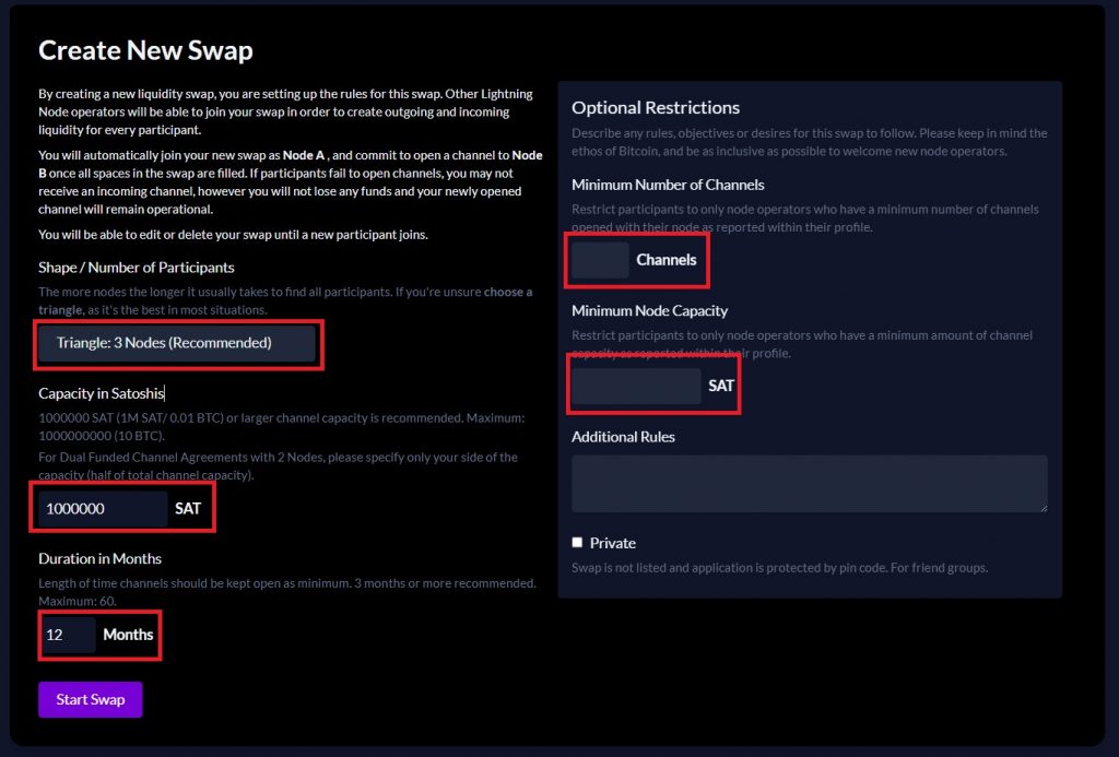 设置完毕后,点击下图的“Start Swap”即可建立交易对,等待其他用户参与其中。