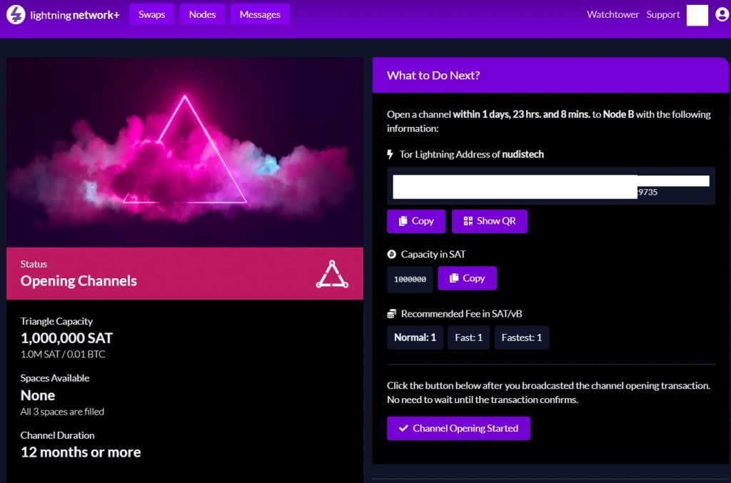 闪电网络通道的建立一般是单向的。可以很方便在诸如1ml.com上找到其他闪电网络节点,并向此节点建立通道。但此时用户建立的是出通道,只能发送闪电网络交易,无法接收闪电网络交易。由于没有入通道,用户发送多少sats,才可以接收多少sats。所以,如何让别人对我们建立入通道呢?下面介绍的LightningNetwork+,便可以撮合闪电网络节点用户相互之间建立通道,从而解决建立入通道的难题。